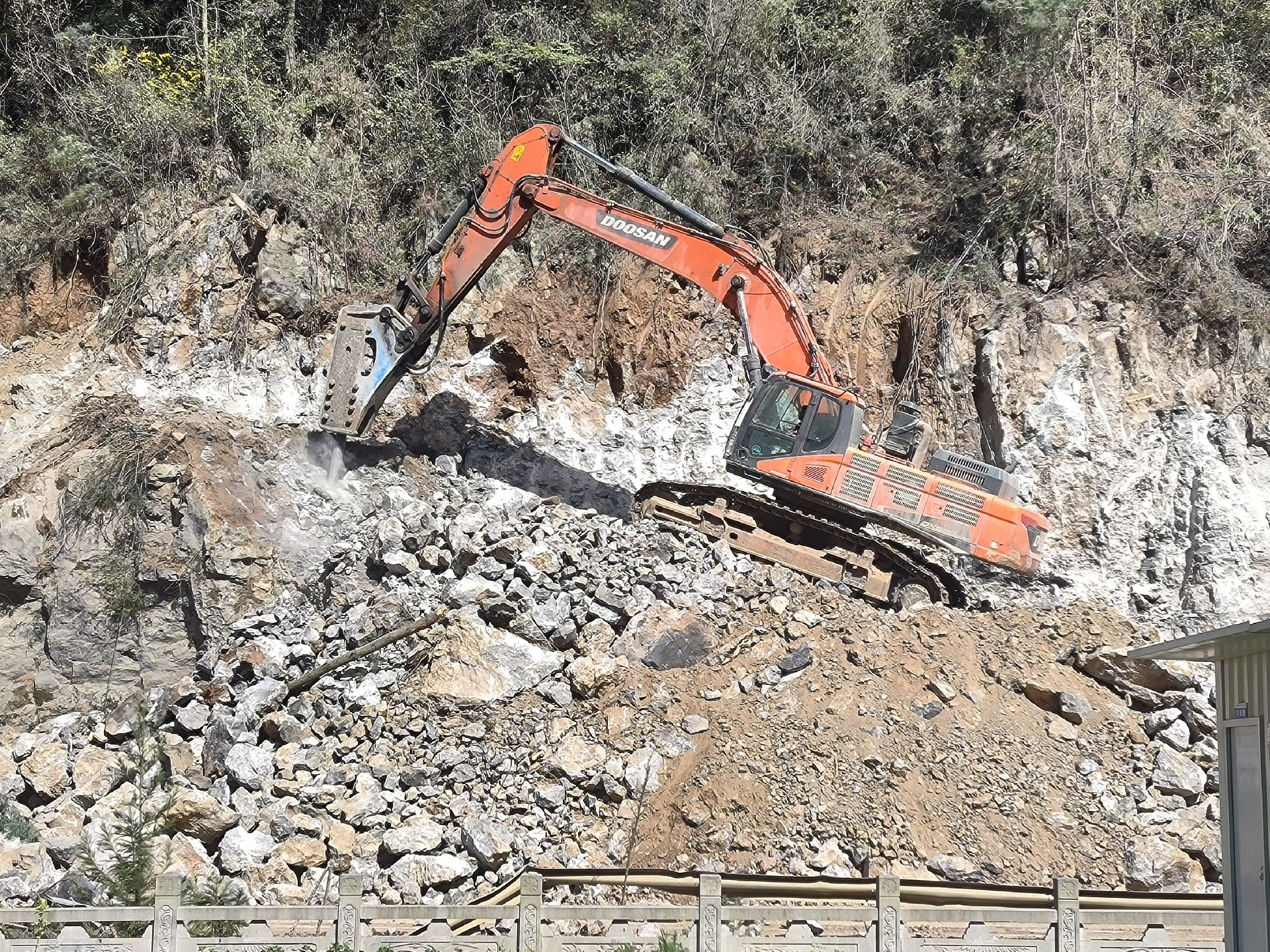 目前正在进行主线路基开挖,完成盖板涵预制85块,占总数52%;挡防工程5023方,占总数31%;土石方开挖6.5万方,占总数12%,利用土石方1.5万方,占总数11.5%;场镇段400米右幅底层6cm油面铺设。