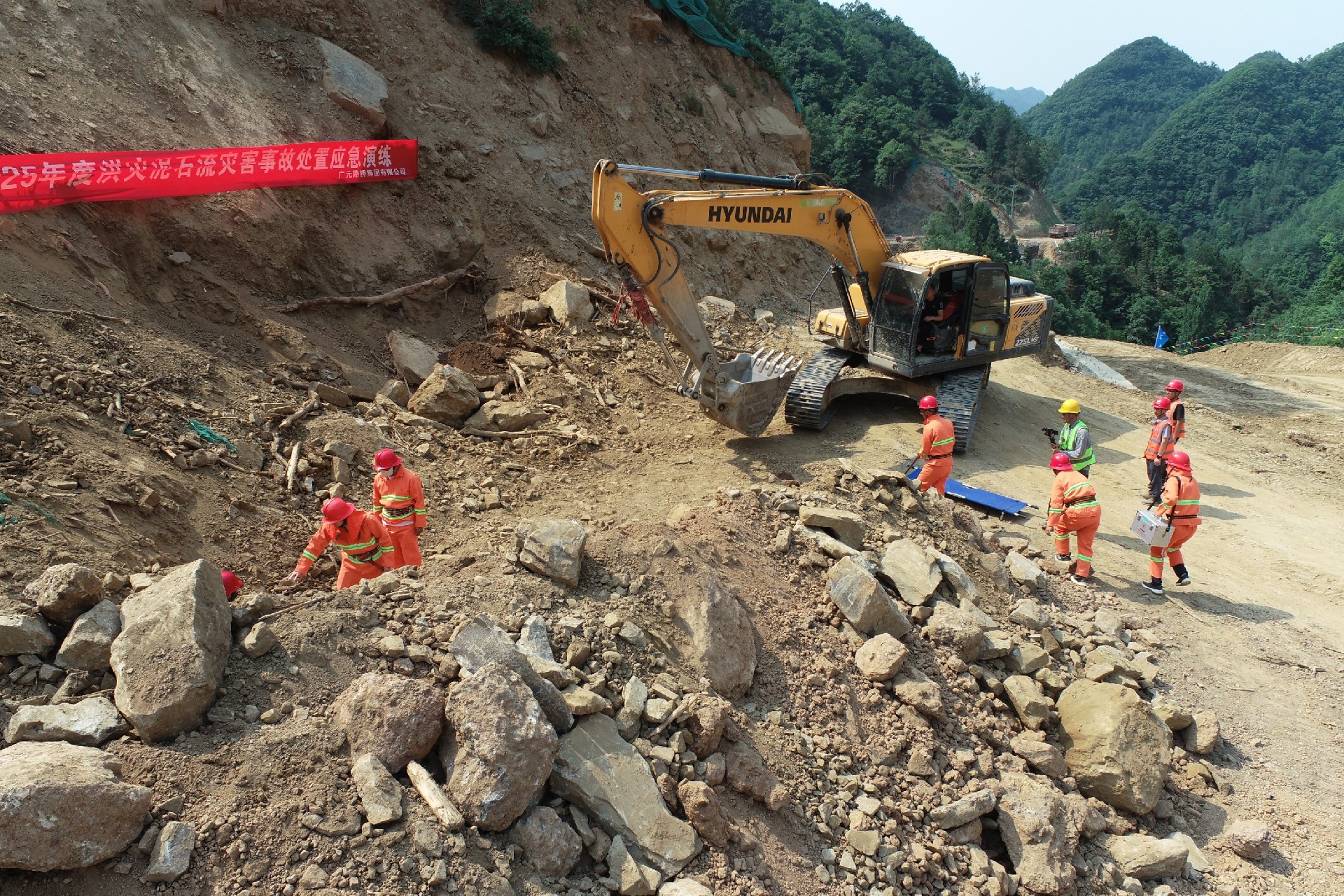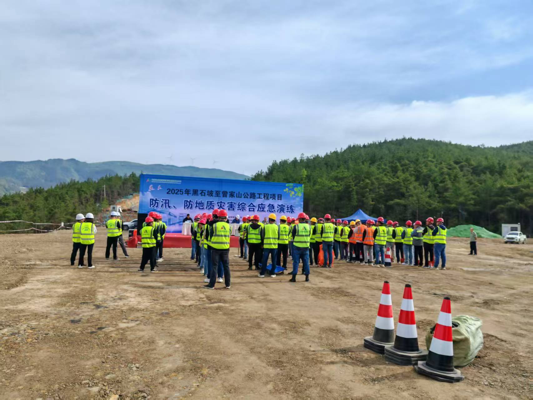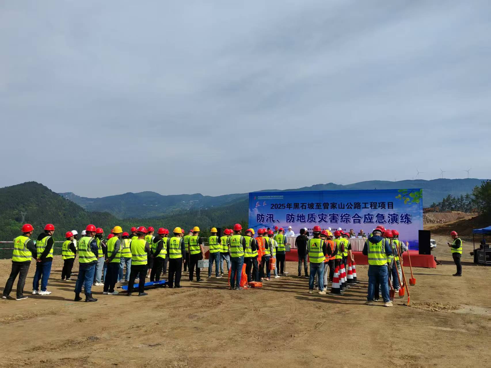 黑石坡至曾家山公路工程项目开展防汛、防地质灾害综合应急演练,多维提升项目部应对突发事件的协调指挥、现场处置等能力。